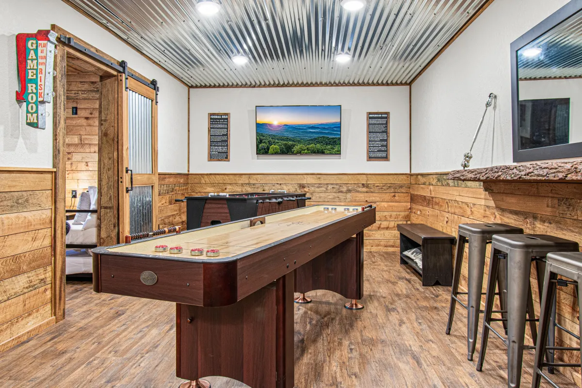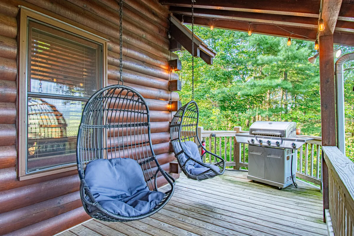 Cherry Log Summit offers an exceptional outdoor experience in the heart of the Georgia mountains, featuring a six-person jacuzzi with stunning views, complete with built-in TV and speakers for ultimate relaxation. The property boasts a comprehensive outdoor playground, including swings, slides, a rock climbing wall, and a playhouse, perfect for family fun. Enjoy evenings around the custom-built fire pit, grilling on the 5-burner gas BBQ, or competing in a game of cornhole with boards designed just for guests. For relaxation, unwind in stylish swinging egg chairs or the private hammock, all while soaking in the breathtaking mountain scenery.